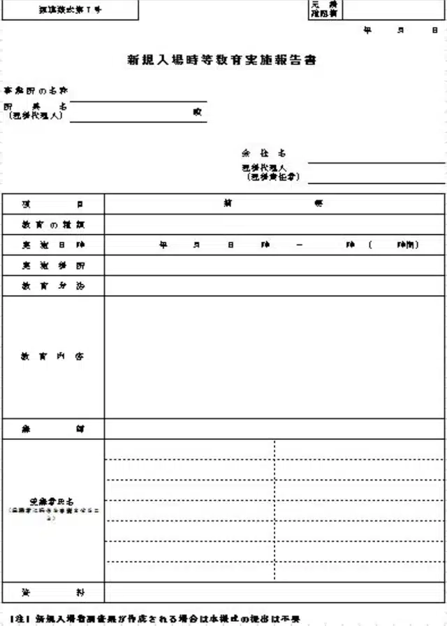 新規入場時等教育実施報告書の記入欄
