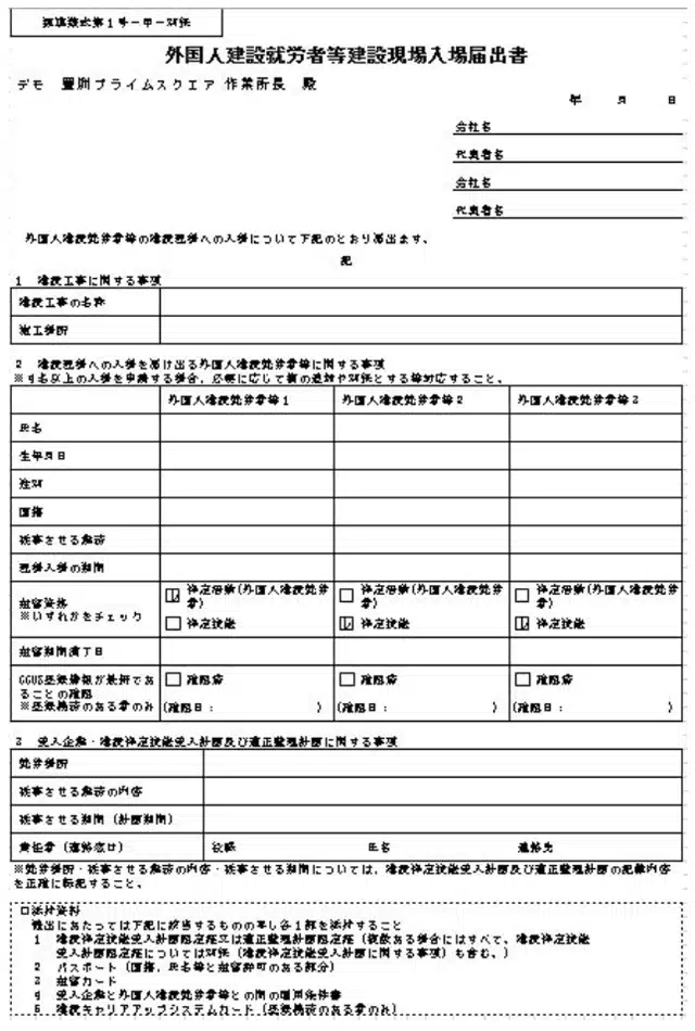 1. 外国人建設就労者等建設現場入場届出書とは