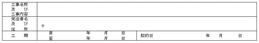 発注者から請け負った工事の名称と、工事の内容(建物や建築物の構造、延べ面積など)を記入します。