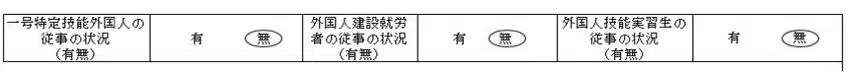 - 一号特定技能外国人、外国人就労者、外国人技能実習生の就労の有無