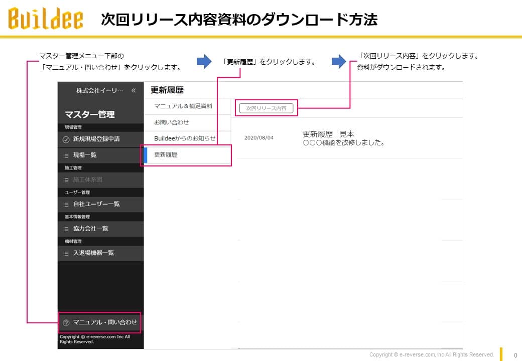 なおリリース内容につきましては、Buildeeログイン後の以下画面より資料をご確認ください。